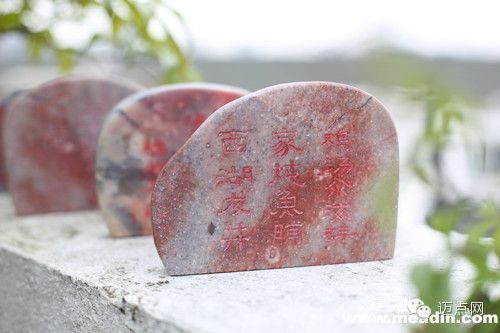 最惊喜的还是上菜前的那一份份菜单,竟然是一块块寿山石,而菜名就刻在了神秘美丽的寿山石纹路里。